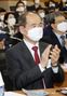 제4기 전국법관대표회의 의장으로 선출된 오재성 부장판사가 25일 오전 경기 고양시 사법연수원에서 열린 제1회 전국법관대표회의에 참석해 박수를 보내고 있다. 사진=뉴시스화상 |
