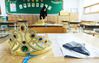 /연합뉴스 초등학교 1·2학년 등교를 이틀 앞둔 25일 오후 경기도 수원시 매여울초등학교 1학년 교실에서 담임교사가 신입생들에게 전달할 금빛 왕관을 책상 위에 놓고 있다. 학생들 책상마다 왕관과 마스크가 놓여 있다.- Copyrights ⓒ 조선일보 & chosun.com, 무단 전재 및 재배포 금지 -