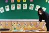 초등학교 1, 2학년 등교수업을 이틀 앞둔 25일 오후 경기도 수원시 매여울초등학교 1학년 교실에서 담임 교사가 학생들에게 전달할 왕관을 책상 위에 놓고 있다. 연합뉴스 |