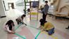 고등학교 2학년과 중학교 3학년, 초등학교 1∼2학년, 유치원생도 27일부터 코로나19 사태 이후 처음으로 학교에 등교한다. 서울의 한 초등학교에서 교직원들이 아이들이 섞이지 않도록 등교 동선을 테이프로 표시하고 있는 모습. 연합뉴스 |