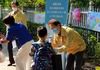 조희연 서울시교육감(오른쪽 첫번째)이 27일 등교개학을 시작한 서울 송파구 세륜초등학교를 찾아 학생들의 발열 확인을 돕고 있다. /사진=김동호 기자 |