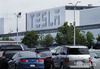 [프리몬트=AP/뉴시스]13일(현지시간) 미국 캘리포니아주 프리몬트에 위치한 테슬라 공장에 차들이 세워진 모습. 일론 머스크 테슬라 최고경영자(CEO)는 11일 앨러미더카운티 당국의 반대를 무시하고 프리몬트 공장을 재가동한다고 트윗했다. 2020.05.14. |