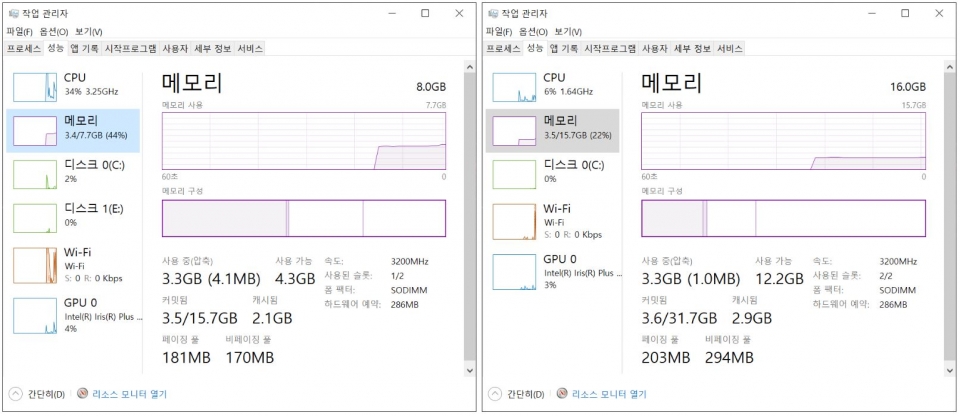 8GB RAM(3200MHz)를 추가로 장착해 듀얼채널 구성으로 만들었다. 이를 제외한 똑같은 조건에서 벤치마크를 구동했다.