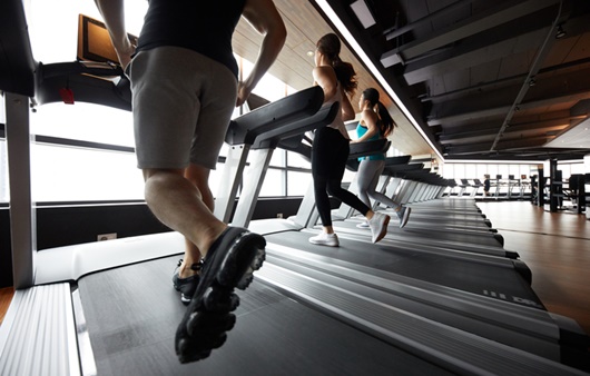 트레드밀은 유산소 운동이라고 하면 가장 많이 떠오르는 장비로 휘트니스센터에 가면 쉽게 볼 수 있다. 사람이 걸을 수 있는 충분한 너비의 벨트가 반복적으로 굴러가며, 속도를 조절해 개인 설정에 맞춰 걷고 뛰는 것이 가능하다. 사람마다 심폐 능력이 다르기에 속도 뿐 아니라 경사도 조절이 가능하며, 요새는 프로그램이 내장되어 맞춤형 속도를 제공하는 고급형 트레드밀도 있다.