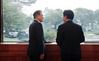 지난해 7월 문재인 대통령과 황교안 당시 자유한국당 대표가 청와대 본관 복도에서 대화를 나누고 있다. 연합뉴스 |