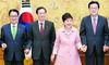2016년 5월 13일 당시 박근혜 대통령과 여야 3당 원내 지도부가 청와대에서 회동했다. 왼쪽부터 당시 박지원 국민의당 원내대표,·우상호 더불어민주당 원내대표, 박 대통령, 정진석 새누리당 원내대표. [청와대사진기자단] |