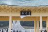 국립대전현충원이 29일 현충원 현판 ‘현충문’을 새 현판으로 교체한 뒤 제막을 하고 있다. 현충원은 그동안 전두환 전 대통령의 친필 현판이 걸려 있었지만 이날 ‘안중근체’로 제작한 새 현판을 달았다. |