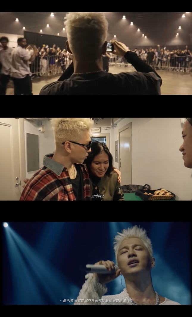 다음으로는 월드 투어 중, 태양에게 열광하는 팬들의 모습이 그려졌다. 그런 팬들을 보며 태양은 "어렸을 때는 내가 표현을 잘 못하고 어떻게 해야 할지 잘 모르니까 못했는데 조금씩 시간이 지나면서 팬들과 더 가깝게 지내려고 한다"고 밝혔다.