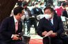 30일 종로구 조계사에서 열린 부처님오신날 법요식에서 더불어민주당 김태년 원내대표(오른쪽)와 미래통합당 주호영 원내대표가 대화를 하고 있다. 2020.5.30 연합뉴스. |