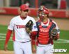이민우는 7회도 마운드에 올라 1사후 2루타를 맞았다. 그러나 이성우의 타구를 최원준이 다이빙캐치를 걷어내며 더블아웃으로 연결해 실점위기를 넘겼다. 그대로 등판을 마쳤다. 투구수는 97개. 147km 직구를 비롯해 변화구에 LG 타자들이 제대로 대응을 못했다.