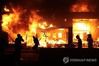 시위 도중 불타는 한 건물 모습 {AFP연합뉴스] |