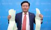 민경욱 미래통합당 의원이 지난 21일 오후 서울 여의도 국회 소통관에서 총선 부정선거 의혹을 제기하는 기자회견을 열고 투표용지를 들고 있다. 뉴스1 |