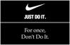 나이키는 1988년부터 시작해 30년 이상을 'Just Do It'(일단 해봐) 문구를 사용하고 있다. 마치 내일부터 운동 할거야 혹은 이일을 해도 될까라고 고민하는 소비자들에게 '일단 해봐'라는 메시지를 전하는 것으로 유명하다.