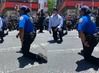 영상에는 무릎 꿇은 경찰관들이 행진하는 시위대 앞에 무릎을 꿇고 있는 모습이다.