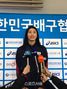김연경이 태국 출국 전 취재진 앞에 서 인터뷰하고 있다. 인천국제공항 | 이용수기자 |