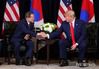 【뉴욕=뉴시스】전신 기자 = 문재인 대통령이 23일(현지시간) 뉴욕 인터콘티넨탈 뉴욕 바클레이 호텔에서 열린 한미 정상회담에서 도널드 트럼프 미국 대통령과 악수하고 있다. 2019.09.24. photo1006@newsis.com |