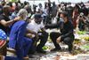조지 플로이드의 동생 테렌스 폴로이드(가운데 흰 옷 입은 이)가 1일(현지시각) 형이 사망한 미네소타주 미니애폴리스를 찾아 무릎을 꿇고 있다. 미니애폴리스/EPA 연합뉴스 |
