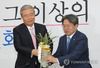 문재인 대통령의 축하 난 전달받는 김종인 |