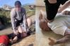 경찰의 과잉진압 모습을 흉내낸 영국 청년들(사진 좌측)과 데이브 홀렌벡의 모습 |