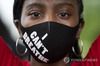 3일 미국 워싱턴DC에서 한 시위대원이 '난 숨쉴 수 없다'는 마스크를 쓰고 있다. |