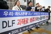 DLF피해자 및 금융정의연대 관계자들이 지난 2월 19일 오후 금융위원회가 있는 정부서울청사 앞에서 '우리·하나은행 DLF 과태료 경감 반대' 기자회견을 하고 있다. [연합] |