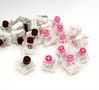 카일 저소음 박스 스위치는 핑크(리니어)와 갈축(넌클릭) 두 종류로 출시된다. 먼저 핑크축은 가벼운 키압 덕분이 구름타법이 가능하고 걸리적거리는 느낌이 없는 것이 특징이다. 입력압은 35g, 바닥압은 45g, 스템 이동거리는 3.6mm다.