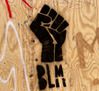 ‘흑인의 목숨도 소중하다 (Black Lives Matter)’ 글구와 검은 주먹이 목재패널에 그려져 있다. |