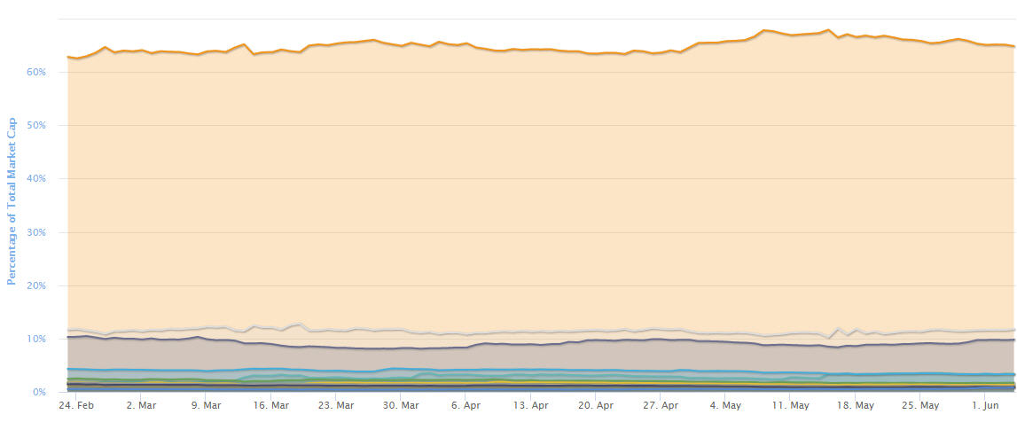지난 하루 동안 비트코인이 알트코인보다 소폭 약했다는 것을 의미합니다.