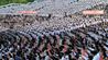 북한 청년들이 탈북자들의 대북전단 살포를 절대 용납할 수 없다고 성토하는 군중집회를 열었다고 노동신문이 7일 보도했다. 사진은 북한 학생들이 평양시 청년공원야외극장을 가득 메운 채 주먹을 불끈 쥐고 군중집회를 하는 모습. (사진=연합뉴스) |