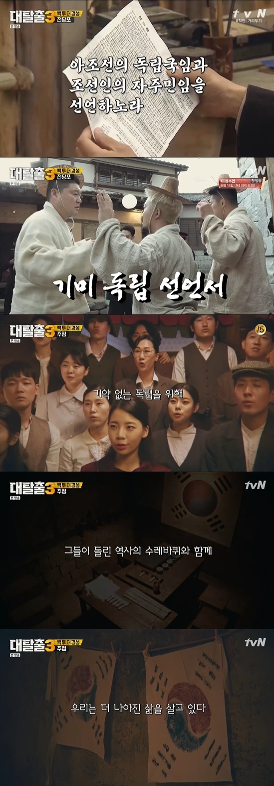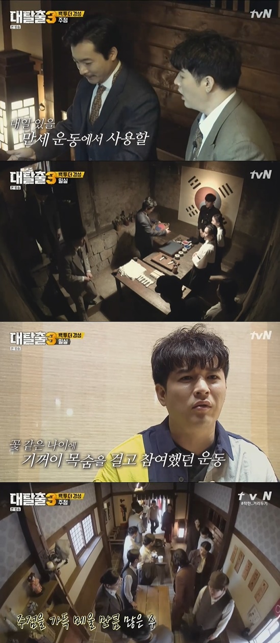 [엑스포츠뉴스 나금주 기자] '대탈출3' 멤버들이 기미년 독립청년회의 도움을 받아 김태임 박사를 구하러 떠났다.