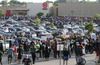 4일(현지 시각) 미국 미주리주 브렌트우드 타깃 매장 앞에서 조지 플로이드 사망 사건 항의 시위대 수백명이 모여 있다. /UPI 연합뉴스 |