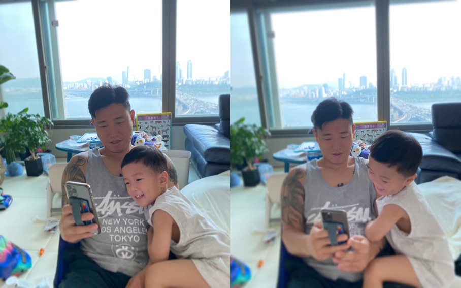 공개된 사진 속 개리, 하오 부자는 민소매 셔츠를 입은 채 휴대폰 화면을 바라보며 밝게 웃고 있다. 창 밖의 탁 트인 한강뷰와 함께, 똑 닮은 부자의 비주얼이 보는 이들의 시선을 사로잡는다.