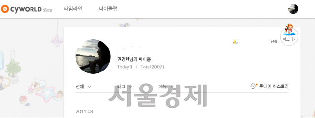 로그인에 성공해 내 이름을 누르면 드디어 개인 싸이홈에 들어갈 수 있다. 미니홈피의 모습과는 다르지만 2000년대에 올렸던 일기장과 사진들은 그대로 남아 있었다.