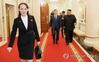 (평양=연합뉴스) 2018년 9월 18일 문재인 대통령과 김정은 국무위원장이 평양 조선노동당 중앙위원회 본부 청사에서 정상회담장으로 이동하는 모습. 앞쪽에 김 위원장 동생인 김여정 당 제1부부장이 보인다. [연합뉴스 자료사진] |