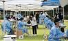 ![학교 운동장에 설치된 선별 진료소