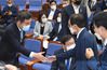 더불어민주당 이해찬(오른쪽 두 번째) 대표와 이낙연(왼쪽) 코로나19국난극복위원장이 8일 국회에서 열린 의원총회에 참석해 악수하고 있다. 둘 사이는 김태년 원내대표.김명국 선임기자 daunso@seoul.co.kr |