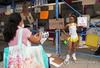 철거작업 중인 시위 팻말 앞에서 사진찍는 미국 시민 |