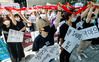 11일 서울 서초구 중앙지방법원 앞에서 열린 텔레그램 성착취 공동대책위원회 기자회견 ‘우리의 연대가 너희의 공모를 이긴다’에서 참석자들이 함께 연대의 의미로 끈을 잇는 퍼포먼스를 하고 있다.(사진=뉴스1) |