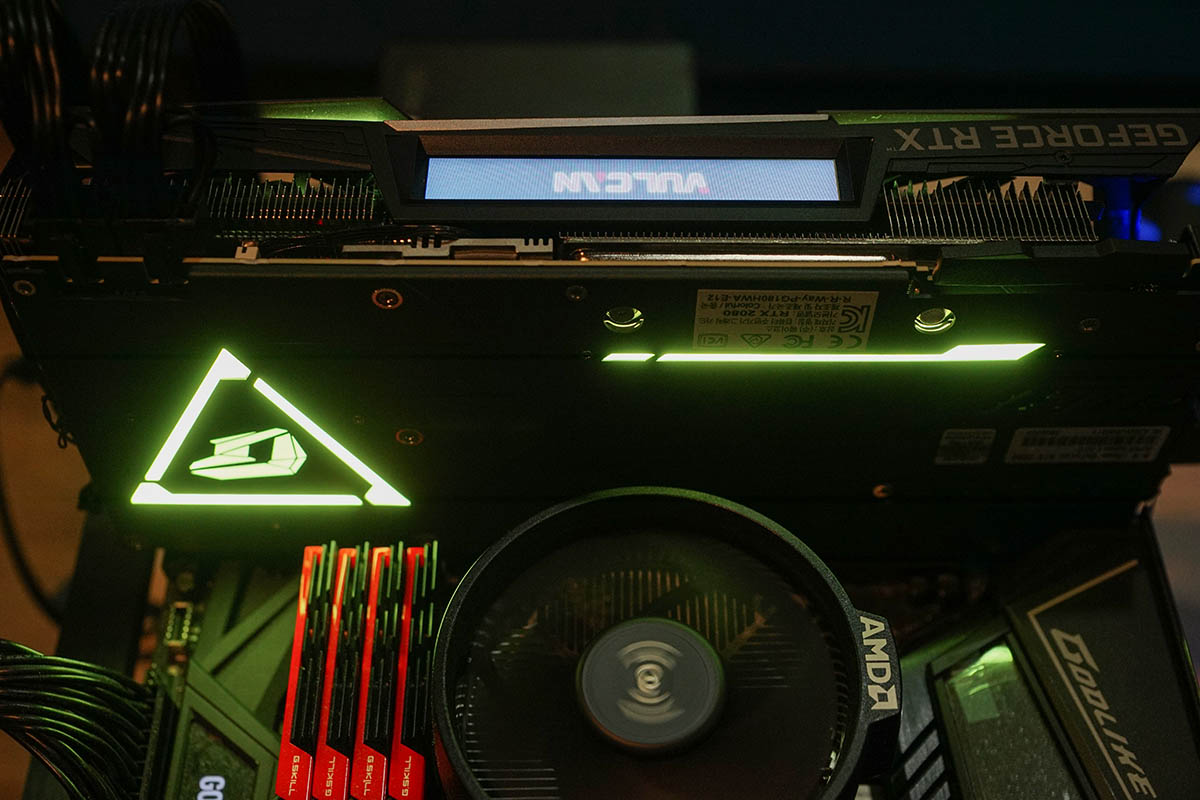 후면에도 그래픽카드 라인을 따라 LED를 적용했고, 끝에 배치된 삼각형 모양의 아이콘에도 같이 LED가 점등된다. 색상이나 점등 방식은 소프트웨어(별도 설치)를 통해 이뤄진다. 화려하게 꾸미는 것을 즐기거나, 다양한 정보를 한 눈에 확인하기를 원하는 소비자를 겨냥한 기능이다.