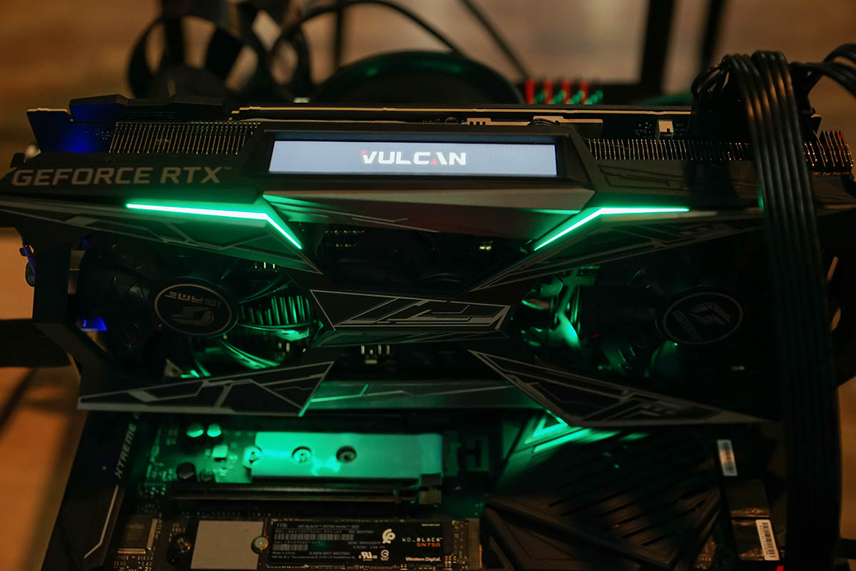 추가로 그래픽카드 측면에는 액정 디스플레이를 길게 배치한 점이 돋보인다. 아이게임 액정 모니터 2.0(iGame LCD Monitor)라 부르는 이 장치는 이 제품이 갖는 가장 큰 특징 중 하나다. 이 위에는 그래픽카드 정보 외에 사용자가 지정한 영상 재생까지 지원한다. 말 그대로 개인 취향에 따라 마음껏 꾸밀 수 있는 공간이다. 영상은 흔히 움짤로 부르는 GIF 형식을 활용한다.