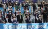 13일 오후 서울 광화문 세종문화회관 계단에서 열린 ‘6.15공동선언 발표 20주년 노동자 민족자주선언 기자회견’에 참가하는 민주노총과 한국노총 조합원들이 남북공동선언 이행, 대북제제 해제 등의 구호를 외치고 있다(사진=연합뉴스). |