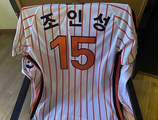 함께 공개한 사진에는 조인성의 이름이 새겨진 한화이글스 유니폼이 담겨있다. 앞서 조인성은 해당 유니폼을 입고 대전 한화이글스 홈구장에서 시구를 해 화제를 모은 바 있다. 당시 한화 포수 조인성이 시포를 함께하기도 했다.