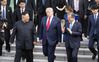 작년 6월 30일 판문점에서 만난 남북미 정상 |