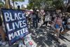 14일(현지시간) 미국 캘리포니아주 헐리우드에서 성소수자들과 인종차별에 반대하는 시위대가 뒤섞여 경찰의 흑인 총격을 비난하며 행진하고 있다. (사진=AFP) |