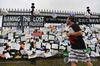 코로나19 희생자 추모지 지나가는 미국 시민 |