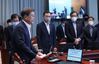 문재인 대통령이 15일 청와대에서 열린 수석·보좌관 회의에 참석하고 있다. 왼쪽은 정의용 국가안보실장. 연합뉴스 |