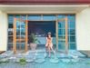 이 카페는 입구를 장식한 하늘색 바닥 타일과 자갈 등 배경부터 분위기까지 청량감을 물씬 풍겨 시선이 집중된다.