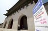 [서울=뉴시스] 고범준 기자 = 문화재청이 신종 코로나바이러스 감염증(코로나19) 집단감염이 지속함에 따라 국립고궁박물관, 궁궐과 왕릉 등 수도권에 있는 실내·외 관람 시설에 대한 휴관을 연장한다고 밝힌 14일 오후 서울 종로구 경복궁 앞에 관련 안내문이 설치되어 있다. 2020.06.14. bjko@newsis.com |