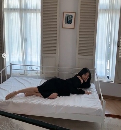 영상 속 한예슬은 블랙 드레스를 입고 침대에 누워 고혹적인 자태를 뽐냈다. 한쪽 어깨를 과감히 드러내며 요염한 포즈로 섹시한 분위기를 과시했다.