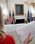 18일(현지 시간) 미국 워싱턴 백악관에서 열린 중소기업 재개 원탁회의에서 한 기자가 존 볼턴 전 백악관 국가안보보좌관의 회고록 ‘그 일이 일어난 방’ 책자를 들고 도널드 트럼프 미 대통령(가운데)에게 질문하고 있다. 트럼프 대통령의 외교정책을 비판한 이 책의 내용이 공개되자 트럼프 대통령은 볼턴 전 보좌관을 강력 비판하면서 반격에 나섰지만 파장은 가라앉지 않고 있다.